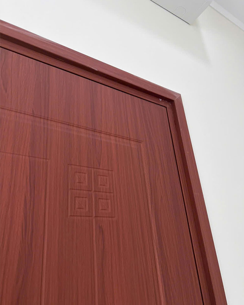 + Cánh cửa có độ dày 40 mm: 2 lớp bên ngoài bề mặt phủ film PVC vân gỗ với màu sắc khác nhau. Bên trong là lớp gỗ nhựa Composite đan xen thành tấm dạng Panel. Bề mặt cánh cửa có thể hút huỳnh, đắp phào chỉ nổi, thêm ô kính …tùy thuộc vào sở thích và nhu cầu của khách hàng.