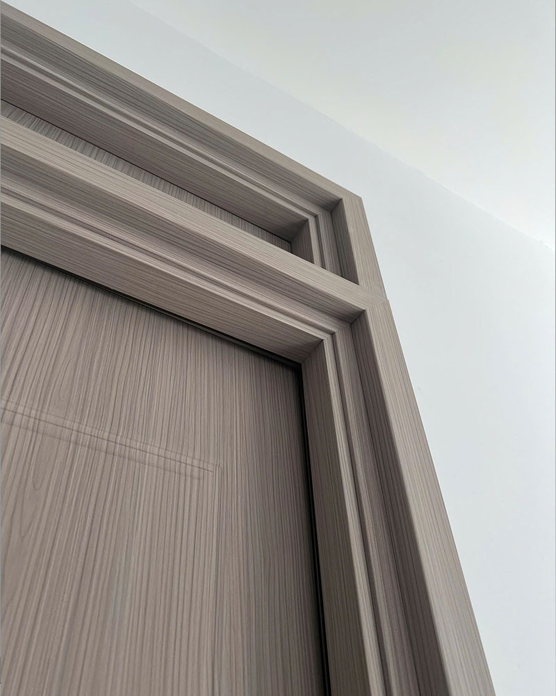 Vật liệu được làm từ bộ gỗ keo mịn trộn đều với nhựa PVC chịu nước, đùn ép thành dạng composite PVC nguyên khối giúp kháng nước 100% nên thường được dùng làm cửa thông phòng, cửa phòng ngủ, phòng khách sạn, cửa vệ sinh và các phòng phụ trợ.