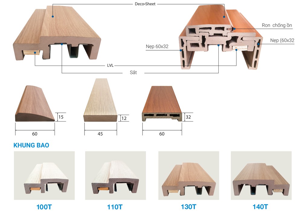 Đặc tínhChống nước, chống mối mọt. Có ron giảm chấn cách âm dọc khung