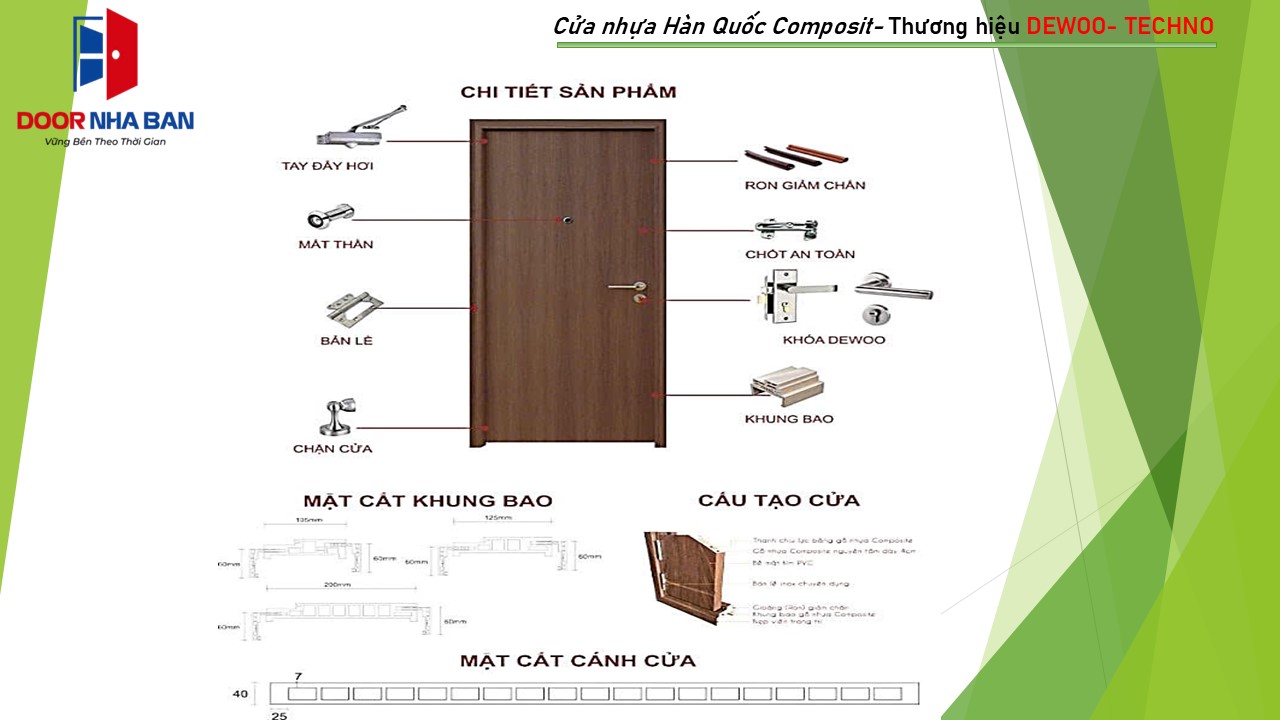 Đặc tínhChống nước, chống mối mọt. Có ron giảm chấn cách âm dọc khung